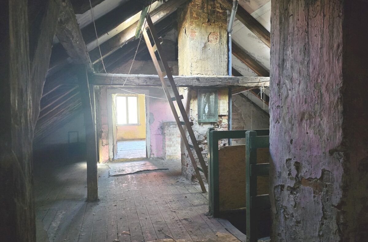 Sprzedam poddasze w 1 piętrowej kamienicy (a więc poddasze to poziom 1 piętra).