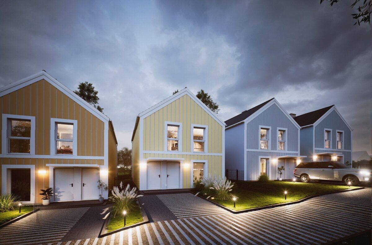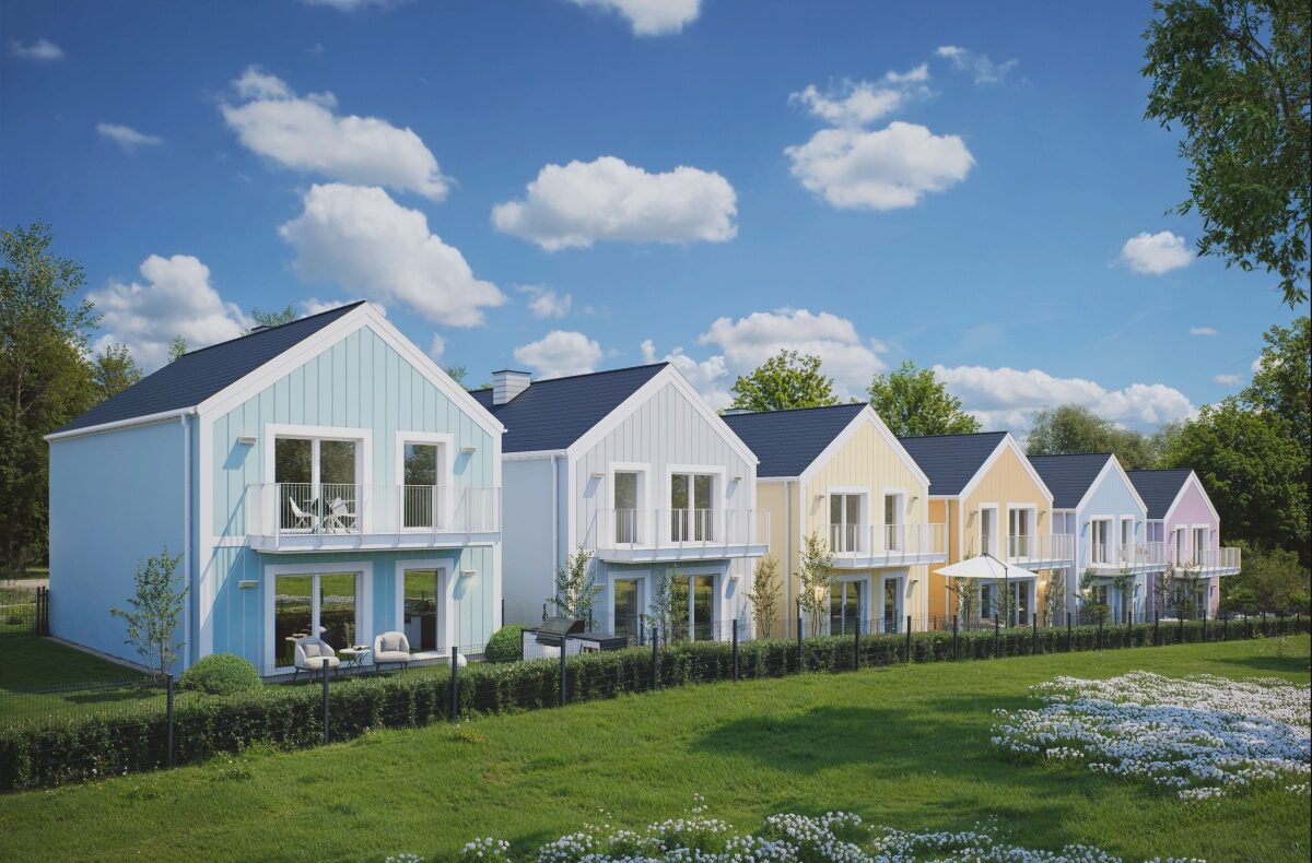 Pastelowa Osada to kameralne osiedle 6 domów dwurodzinnych podzielonych na mieszkania na górze (z balkonem) oraz na dole (z ogrodem).