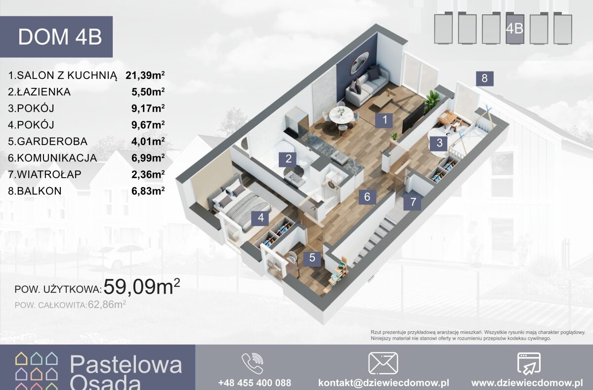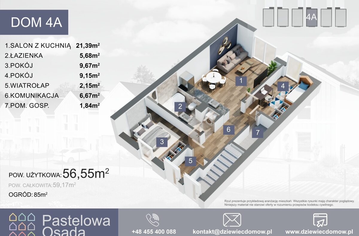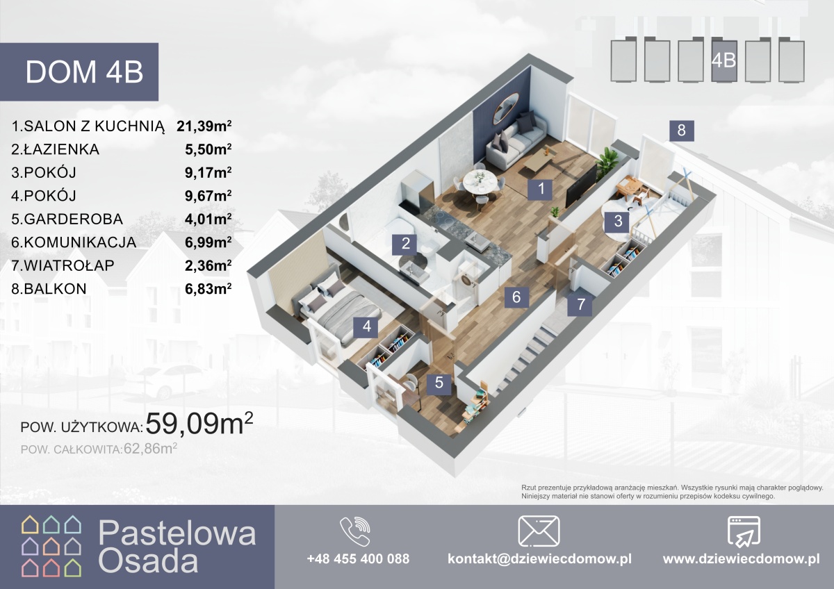 Oferta dotyczy górnego mieszkania w środkowym domu. Wszystkie ceny i szczegóły znajdą Państwo na stronie internetowej: