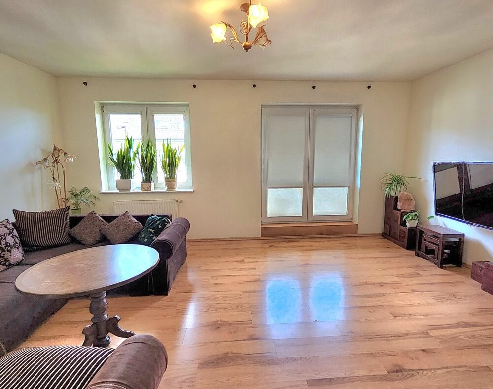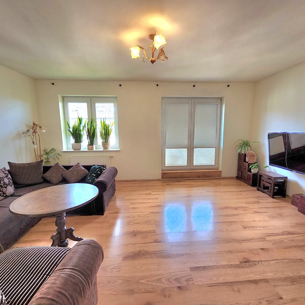 trzy ustawne pokoje: dwa większe (ok. 17 m² każdy) oraz jeden mniejszy (ok. 8 m²) – idealne jako sypialnie, pokoje dziecięce lub gabinet,