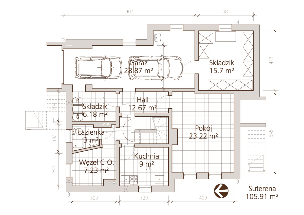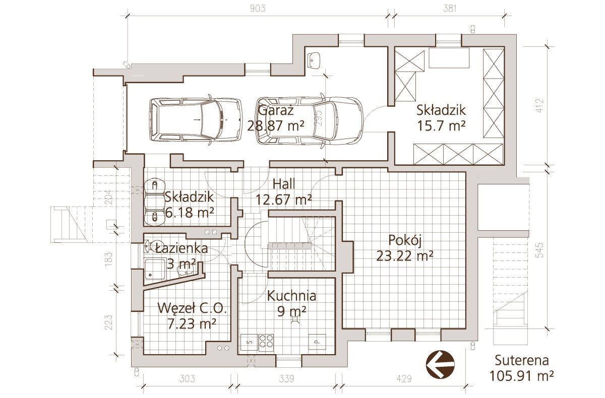 Dom wyposażony jest w instalację alarmową, oraz w automatyczną, segmentową, szczelną, izolowaną termicznie bramę garażową HORMANN z naświetlem KALWALL. Ponadto balustrady zewnętrzne z egzotycznego drewna MERBAU. Spalinowy komin ze stali kwasoodpornej. Budynek formalnie zgłoszony po zakończeniu budowy, oraz z kompletem aktualnych badań okresowych i świadectwem charakterystyki energetycznej SCHE/37435/1/2024. Dom ma następujące kondygnacje: