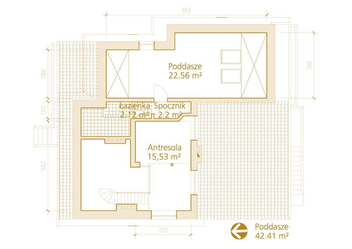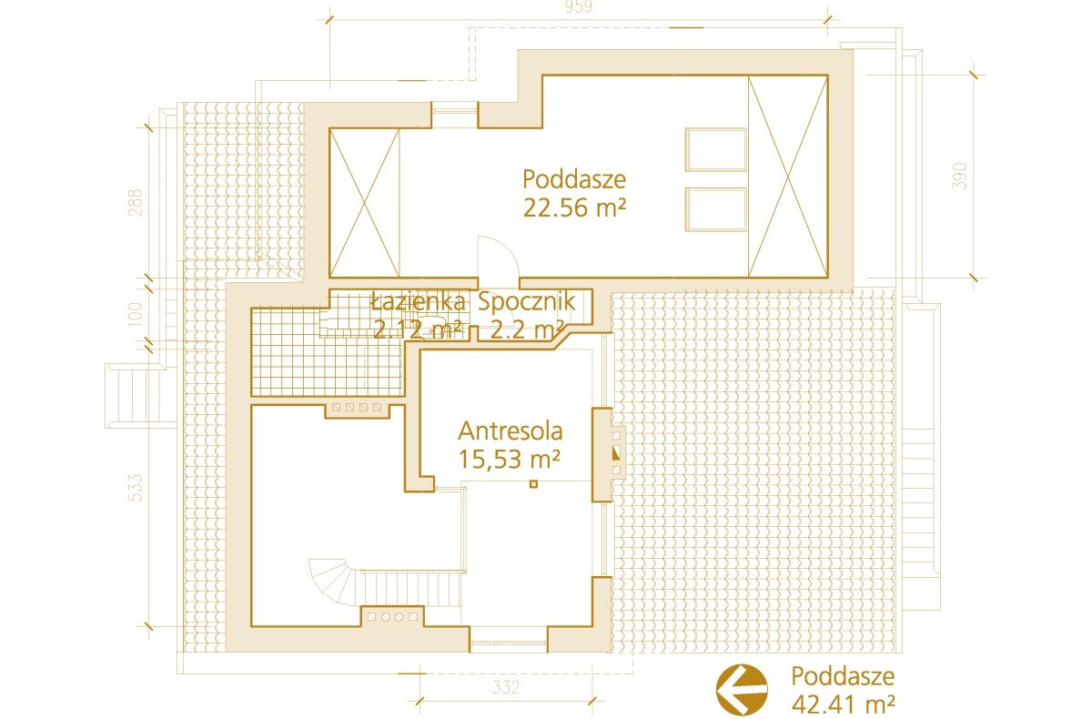 Poddasze użytkowe z antresolą i z oknami w dachu 42 m2,