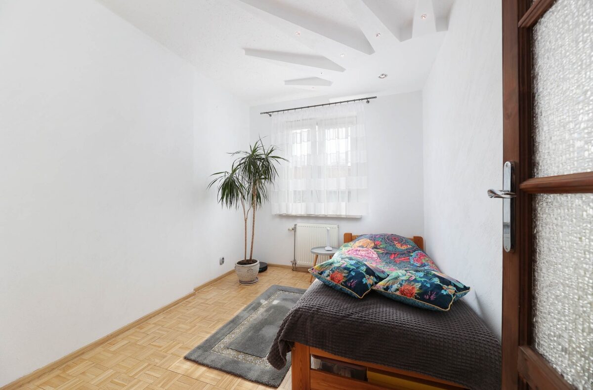 Oferowana nieruchomość składa się w swojej zasadniczej części (52,5 m2) z dwóch oddzielnych pokoi, osobnej kuchni, łazienki , spiżarni/pomieszczenia gospodarczego i przedpokoju oraz przynależy do niej balkon i ponadstandardowych rozmiarów piwnica (5,6 m2). Dodatkowo wraz z mieszkaniem sprzedawana jest mieszcząca się bezpośrednio nad nim część strychu o łącznej powierzchni ok. 25 m2, dająca bardzo szeroki wachlarz możliwości zagospodarowania tj. nie tylko potencjalnie stworzenie dwupoziomowego mieszkania o większej powierzchni, ale również zagospodarowanie na strychu osobnego pomieszczenia do pracy lub rozrywki. Lokal przeznaczony jest do sprzedaży z całością ruchomego wyposażenia i nadaje się do natychmiastowego zamieszkania lub wynajmu.
