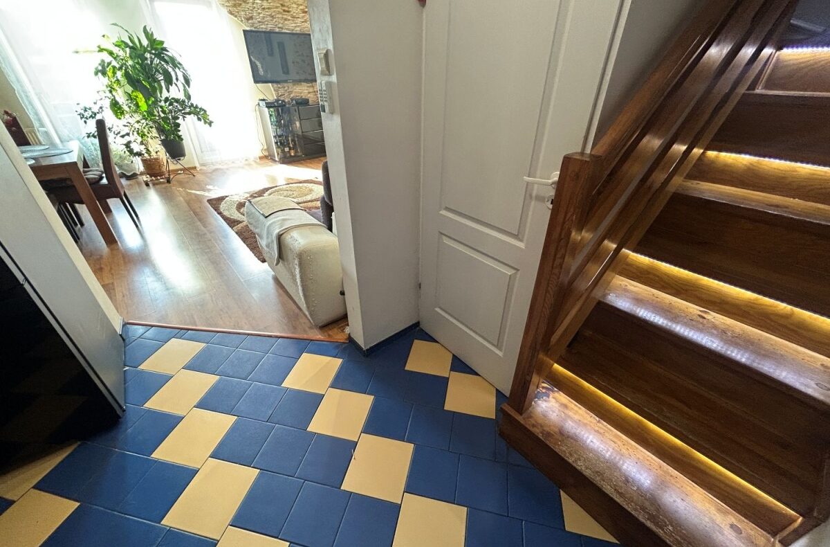 MIESZKANIE DWUPOZIOMOWE: Na dole jest duży salon z aneksem kuchennym (34m2), oraz schowek pod schodami (4m2). Na górze do dyspozycji są dwa pokoje (12 i 15m2) oraz łazienka (ok 5m2). Okna w salonie zostały wymienione 3 lata temu, a dachowe pół roku temu (trzyszybowe).