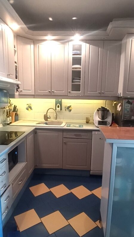 Mieszkanie o powierzchni ok. 84 m2 (po podłodze), 70,3 m2 – użytkowe ze względu na skosy na piętrze.