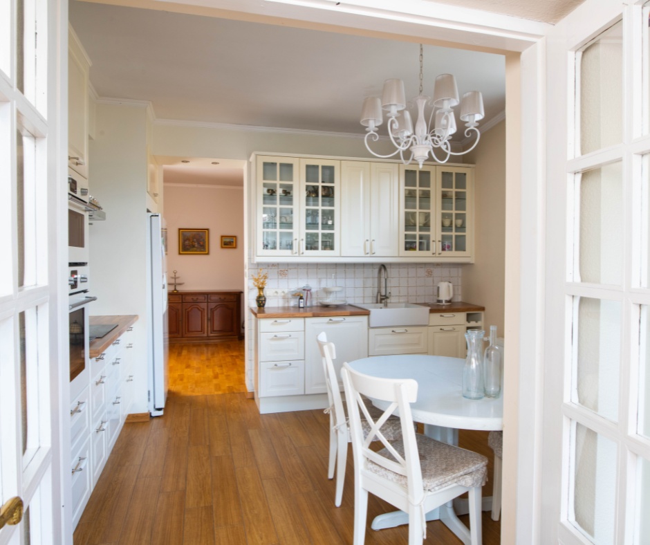 130m² składa się z dużego salonu, jasnej kuchni otwartej na oszklony pokój kawowy, 3 sypialni, gabinetu, 2 łazienek (w jednej wanna w drugiej prysznic), 2 przedpokoi oraz pokoju bilardowego (nie wliczony do metrażu).