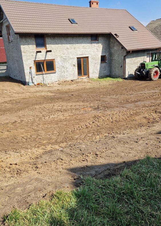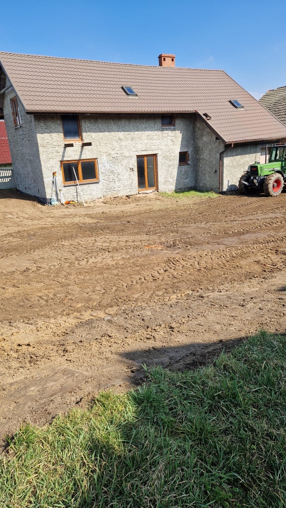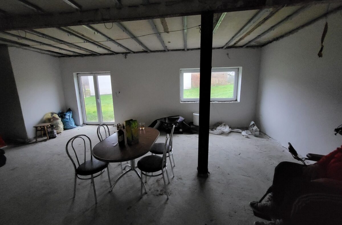 Za domem usytuowany jest budynek socjalny – zadaszony, z oknami, wykonanymi tynkami wewnętrznymi oraz przygotowaną instalacją elektryczną.