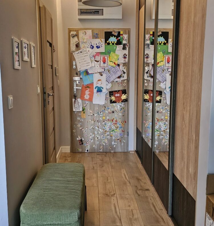 Przestronny przedpokój z pojemną szafą w zabudowie,