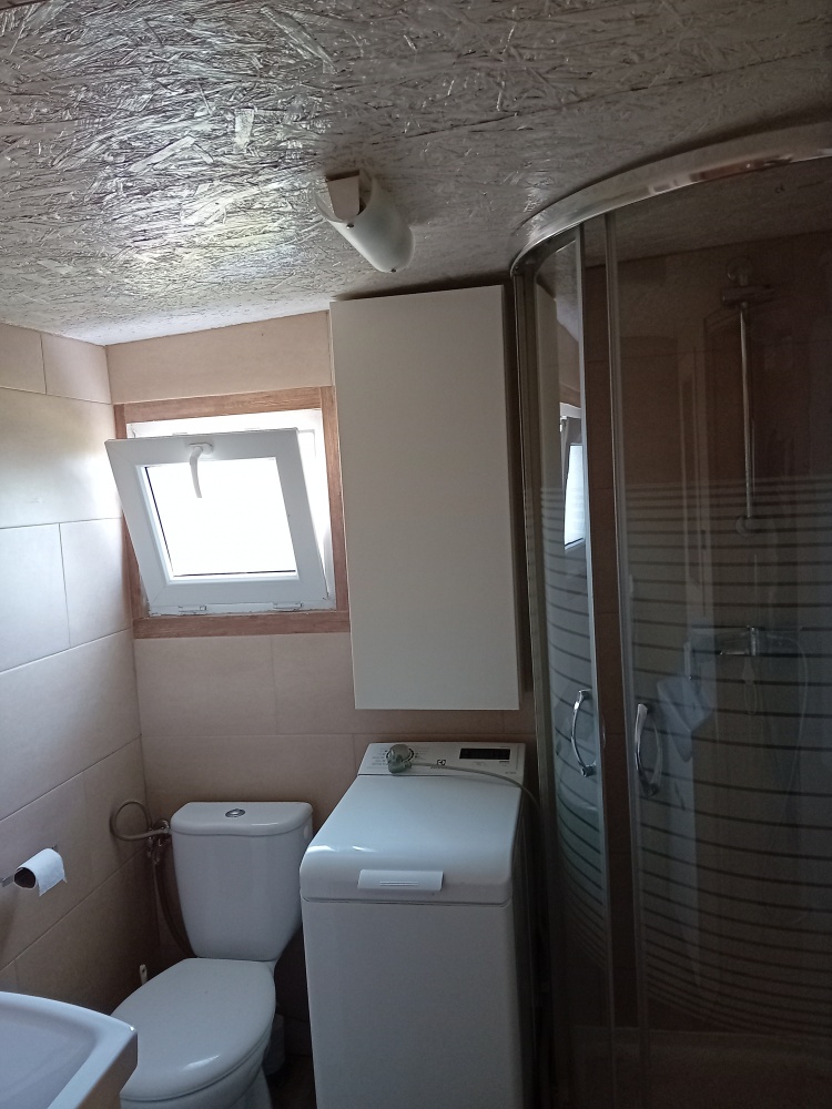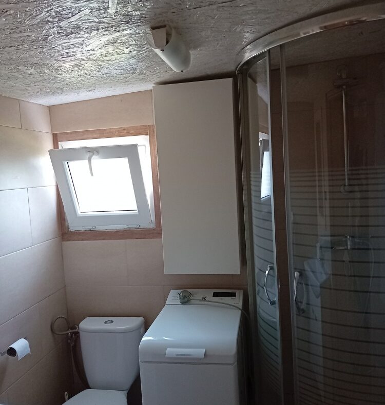 Łazienka z prysznicem, bojlerem i pralką
