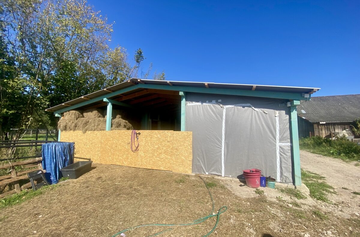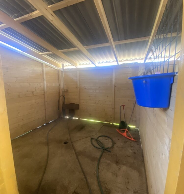 Zagrodzone padoki z wiatami (1 wiata 5×8 m oraz 2 wiaty 3×5 m)