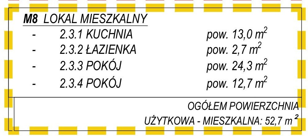 Mieszkanie znajduje się na 2 piętrze w 3-piętrowej kamienicy, co zapewnia kameralną atmosferę. Łączna powierzchnia mieszkania wynosi 52,70 m2: