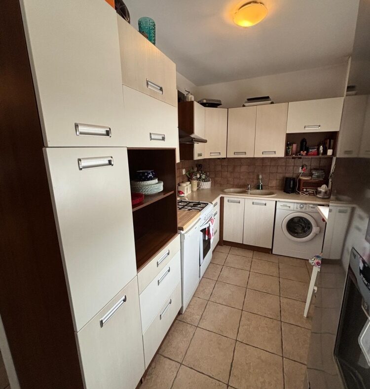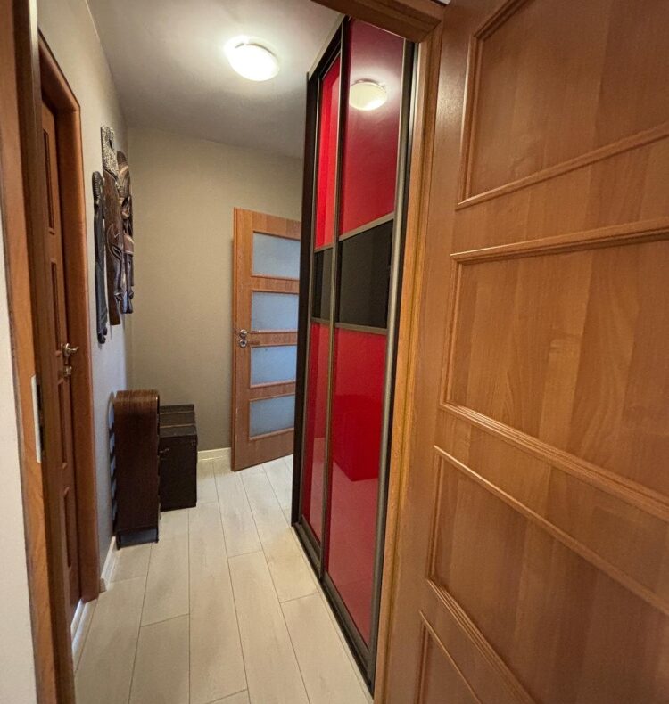 Mieszkanie jest całkowicie umeblowane: wyposażona kuchnia oraz jadalnia, w dwóch sypialniach łóżka małżeńskie oraz duże szafy w zabudowie. Trzecia sypialnia pełni funkcję garderoby/ składzika – do własnej aranżacji. Świetnie zaprojektowana przestrzeń z dużą ilością miejsc do przechowywania.
