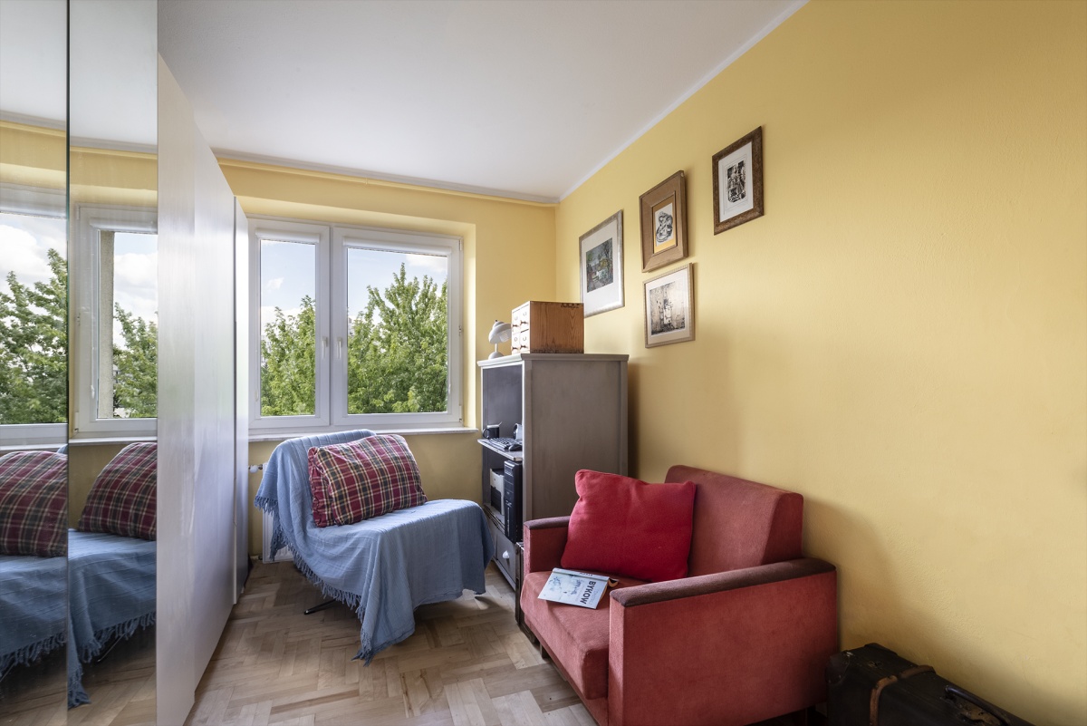 Nieruchomość: Proponujemy Państwu trzypokojowe mieszkanie na spokojnym, nisko zabudowanym osiedlu na Ursynowie. Lokal znajduje się na 3 piętrze w 3 piętrowym budynku. Całościowo 63m2, w tym: salon z aneksem kuchennym, sypialnia, przedpokój, balkon oraz łazienka z WC. Mieszkanie bardzo ciche. W mieszkaniu są nowe kaloryfery i drzwi wewnętrzne /framugi w naturalnej okładzinie drewnianej. Podłogi z dębu/buku wystarczy wycyklinować. Inne atuty: bliskość parku i lasu/metra/supermarketów i usług, słoneczne wnętrze, interesujący rozkład, spora 5,4 m.kw. loggia, nie tylko piwnica lecz i miejsce w rowerowni lub wózkowni. Mieszkanie to jest położone na porośniętym piękną zielenią osiedlu Kazury – z każdego okna widok na zielone drzewa.