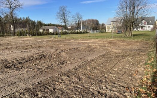 Działka o regularnym, niemal kwadratowym kształcie 33 na 32m i równej powierzchni 1066m2, oczyszczon
